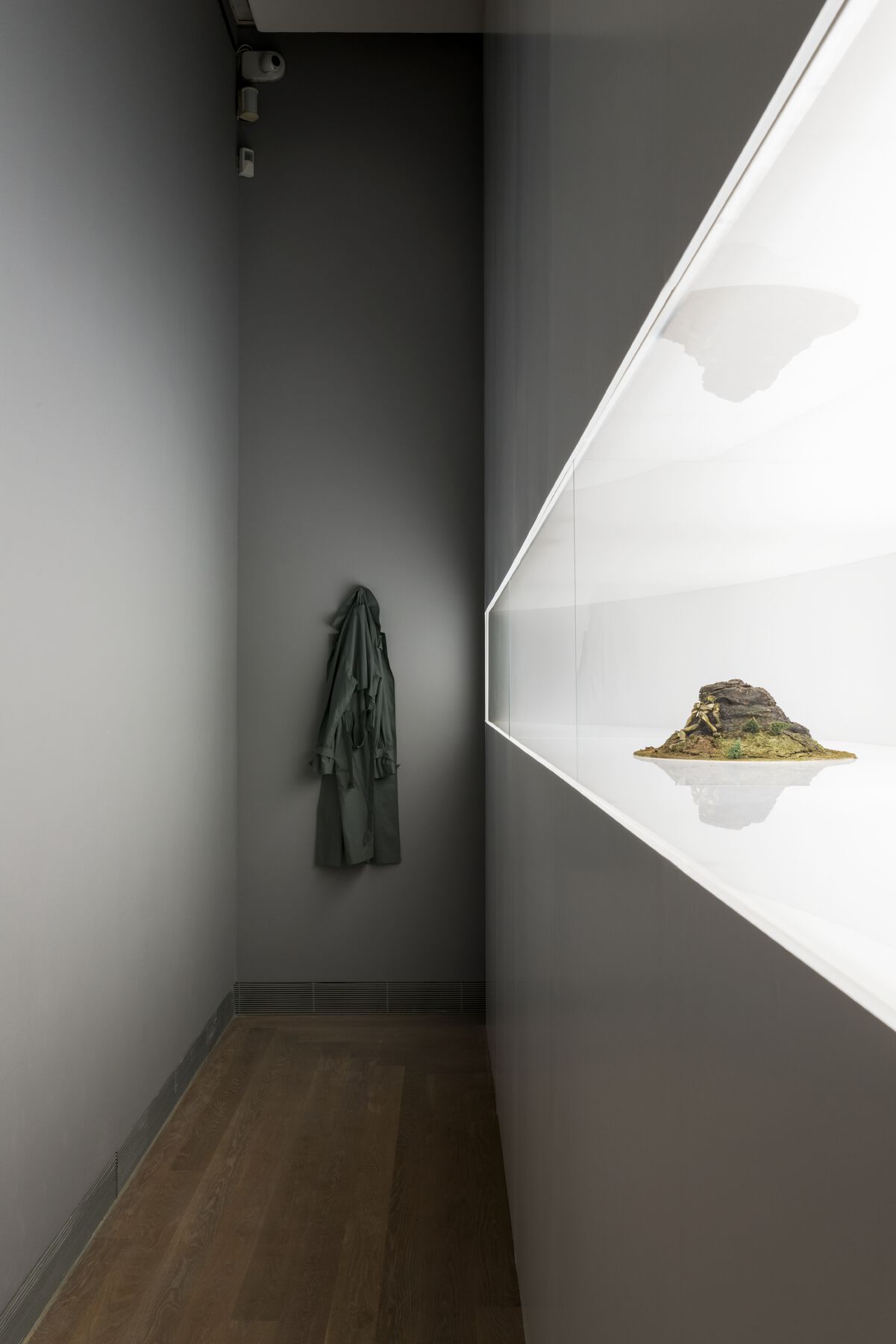 The space was designed to partly disorient visitors in order to heighten their awareness of the museum’s features. Villar Rojas wanted to create what he described as “a crazy passage, where people would wonder what is going on or what went wrong in terms of display of objects, use of walls, use of textures, use of the space” (). Typical museum features and details were distorted by narrowed passages, raised podiums, and faux wall panels. Slick, pristine, shiny surfaces and illuminated showcases were used. These features surrounded objects consisting of various kinds of organic and inorganic materials, partly in decay, creating a contrasting setting that highlighted and commented on the works as museum pieces. In the film introducing the exhibition, Villar Rojas stated how he wanted to reflect on the concept of documents and on the objects as documents, and what that means to him specifically, since most of his earlier works no longer exist ().