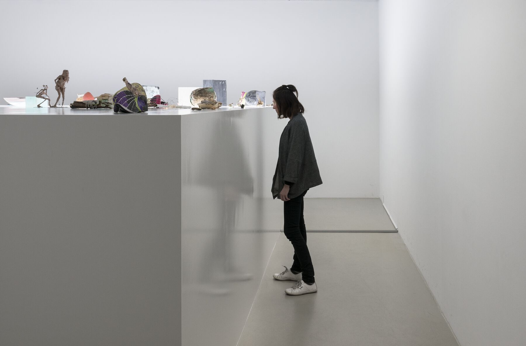 After the exhibition, the installation was split into four parts, of which Moderna Museet acquired one, consisting of eighty-five objects. Shortly after the acquisition, the work was shown at Moderna Museet Malmö, a subsidiary of the Stockholm museum. In dialogue with Villar Rojas, it was decided that the objects should be exhibited on a podium of the same construction and height as in Fantasma, but one-fourth the original size. The surface was still half underlit opaque white acrylic, and half a painted surface. Even if the same type of presentation was chosen for the exhibition in Malmö, the artist is open to other display constellations, with these possibilities still to be determined.