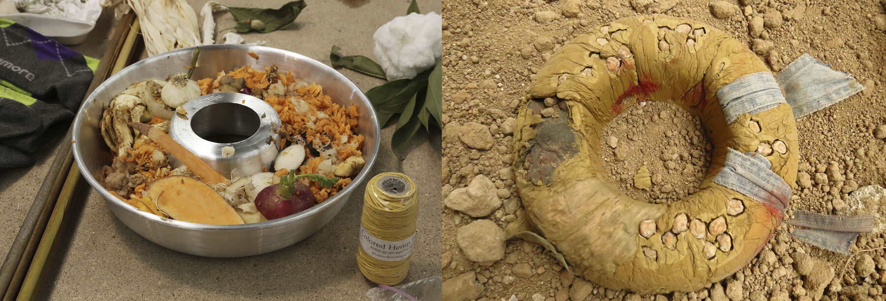 During preparation and through the exhibition period there was an open dialogue between the conservators and the artist regarding the display of objects. Dilemmas, big or small, were attended to with perfect attention to minute detail by the Villar Rojas studio. For example, there were discussions about vulnerable pieces that could not be secured or protected, and about the handling of debris and losses, namely whether these should be removed or retained. Images were exchanged and mutual decisions made. Conservators had to work outside their comfort level, accepting change and losses, and the artist had to be understanding toward necessary treatments and limitations of display.