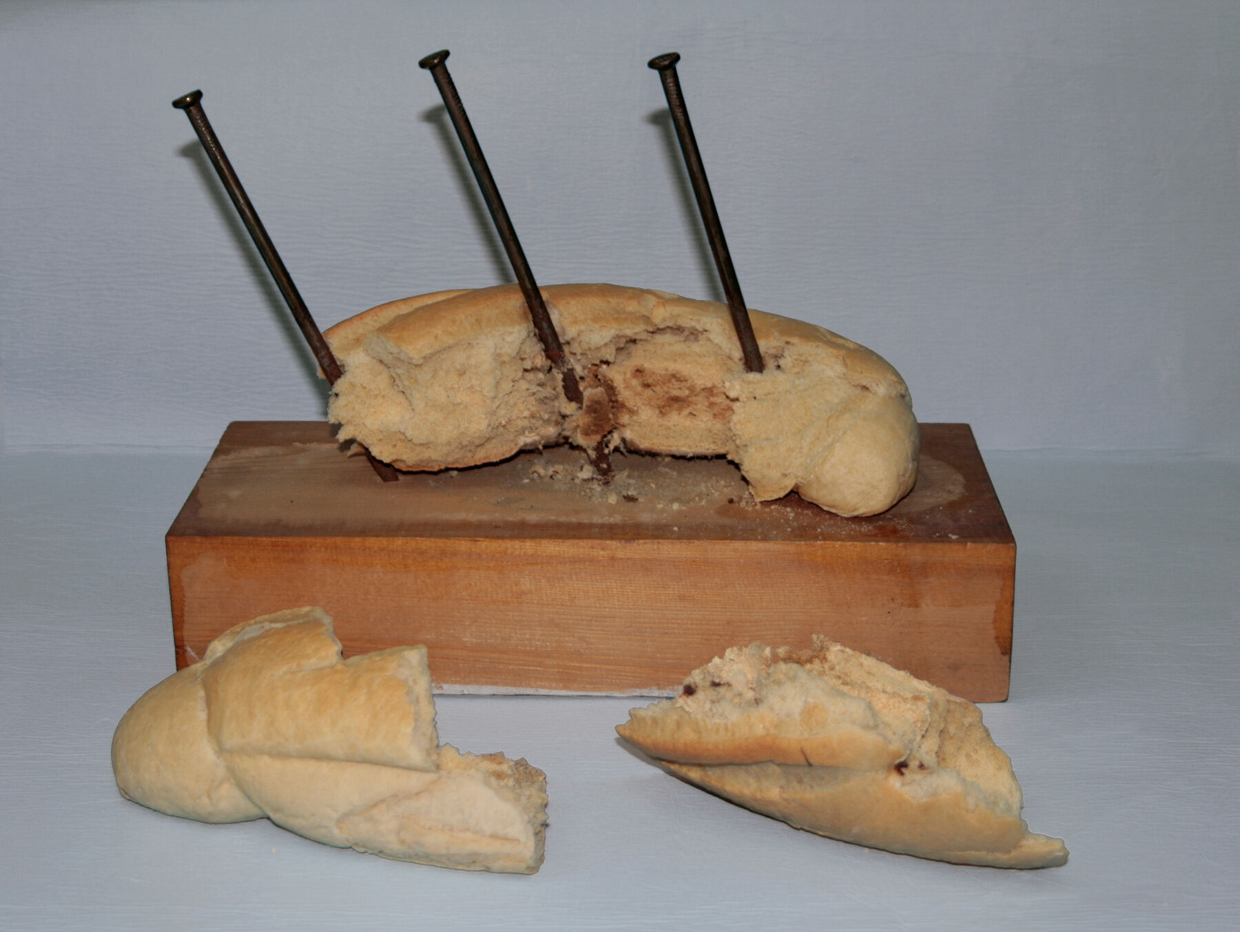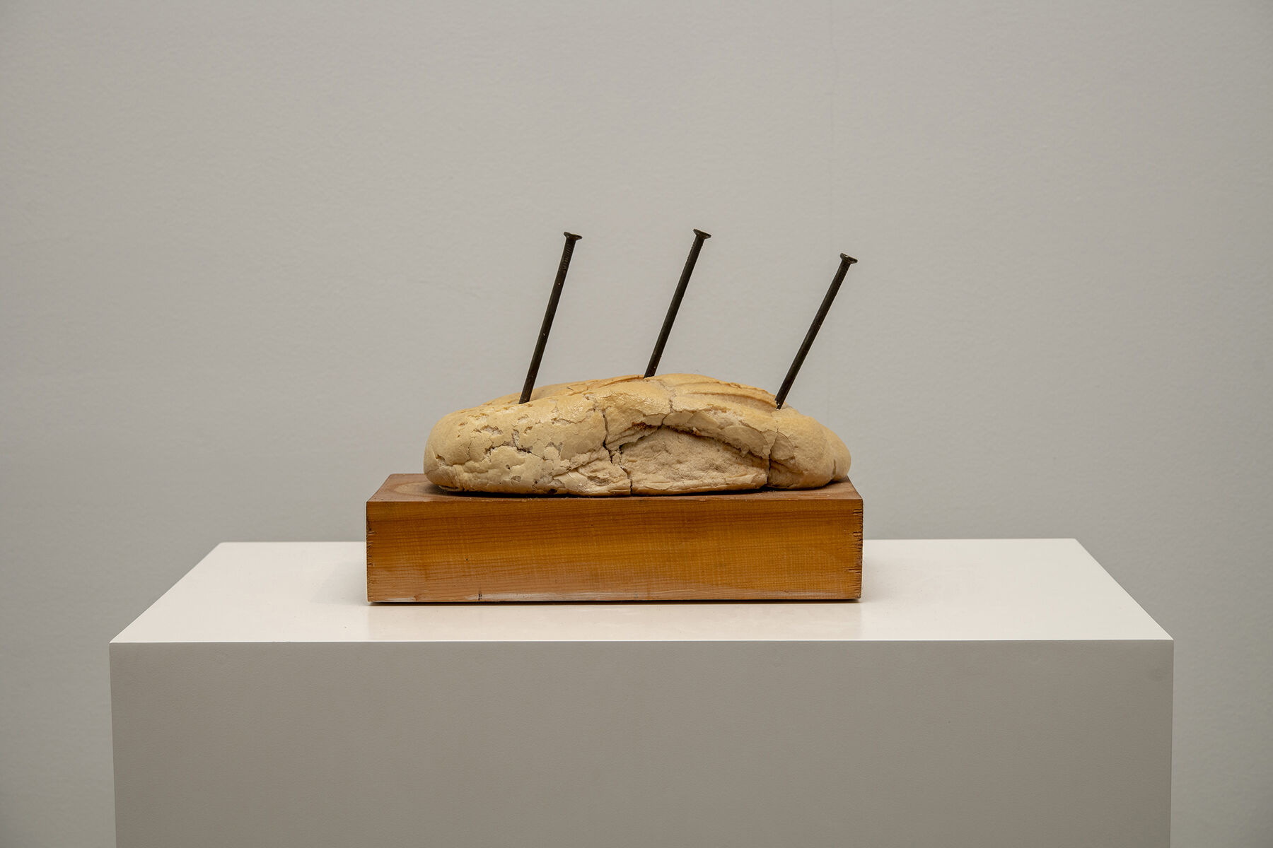 Food as an artistic material transmits a message by being precisely what it is. The musealization of such materials opens up many ethical and technical questions (), as contemporary art often does, as well as collaborations with experts in different scientific fields. Artworks that contain organic materials especially require the establishment of methodologies for their maintenance. Nailed Bread belongs to the 1970s, a very productive time for conceptual art in the former Yugoslavia, on which Raša Todosijević left a mark. The object itself, made of the original material by the artist in this particular period, has an authenticity and a special meaning for the artist and for the museum. Replacing it with a new loaf of bread would require re-hammering the nails—an action that would not only change the work’s meaning, but alter its time and dating because it would take place in a new moment and under different circumstances.