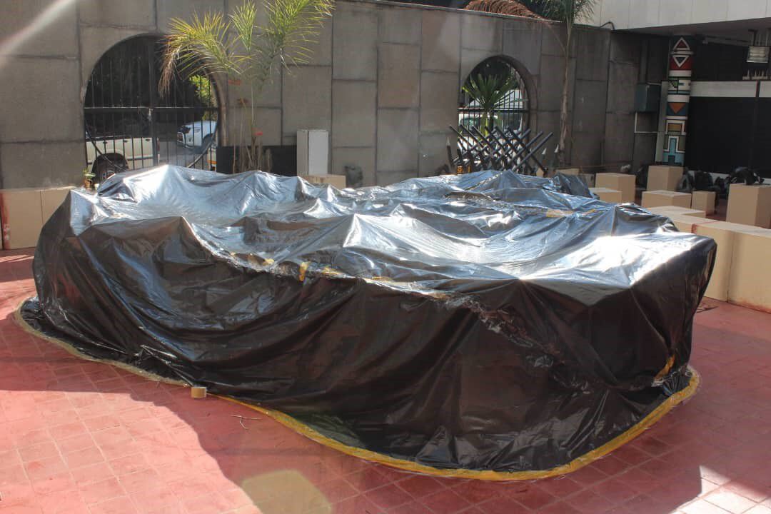 The exhibition team proactively addressed potential pest hazards. The nests prepared for the egg-laying chickens were to be made from logs gathered in the forest—these nests would be more cost effective for the gallery compared to buying specially prepared nests from the market—but they posed a greater possibility of pest infestation on both the chickens and other artworks made from organic materials. Thus, the nesting materials were treated with pesticides, then covered with black polyethylene sheets and placed for a prolonged time in the sun to kill any pests present (fig. 8.1, fig. 8.2a, fig. 8.2b). This was a low-cost method of preventing pest infestation in the gallery, since the museum had no fumigation chambers.